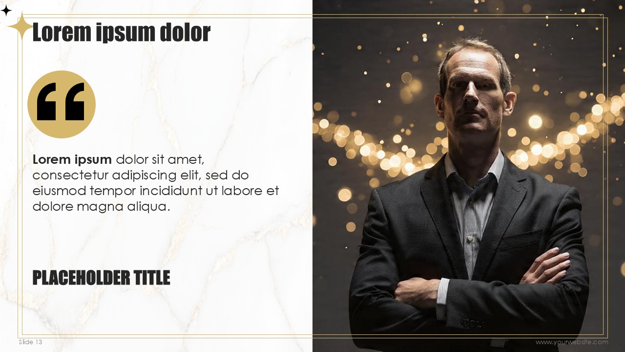 The color combinations work so well with one another. There is so much purpose in choosing white (refers to new beginnings/clarity), grey (stability), yellow (for an optimistic future/success), gold (for achievement), and black (for depth and contrast). The color choices serve one clear purpose in the 2026 Corporate New Year Presentation PPT Template, which is to maintain one color theme, and set the theme to one color in case the user needs colors to visualize the contrasting and important data.