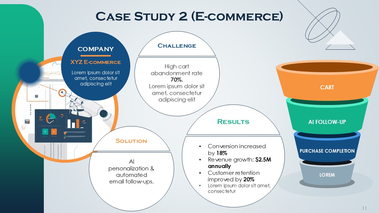 The presentation does a great job of dissecting automation in an intellectually and visually pleasing manner. One can expect to find process flow diagrams that show the human in the loop, ROI thermometers that capture revenue and efficiency, and capability maturity models that start with robotic process automation and finish with cognitive AI. Each slide is a module and demonstrates, with a high level of care in the visuals that describe technology, that these can be blueprints for achieving a high level of business strategy execution.