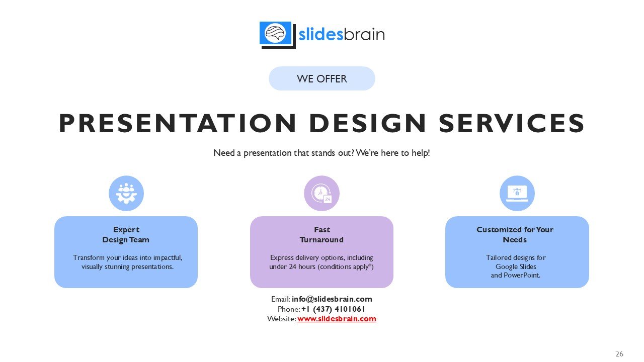 Looking for a slide or PPT that’s uniquely yours? Our presentation design agency is here to help make your ideas a reality. As a leading presentation design company, we focus on delivering premium-grade bespoke presentations that engage your audience and ensure message retention. Kindly get in touch with us for professional custom presentation design services and transform your brand’s message for the purpose that you have in mind.