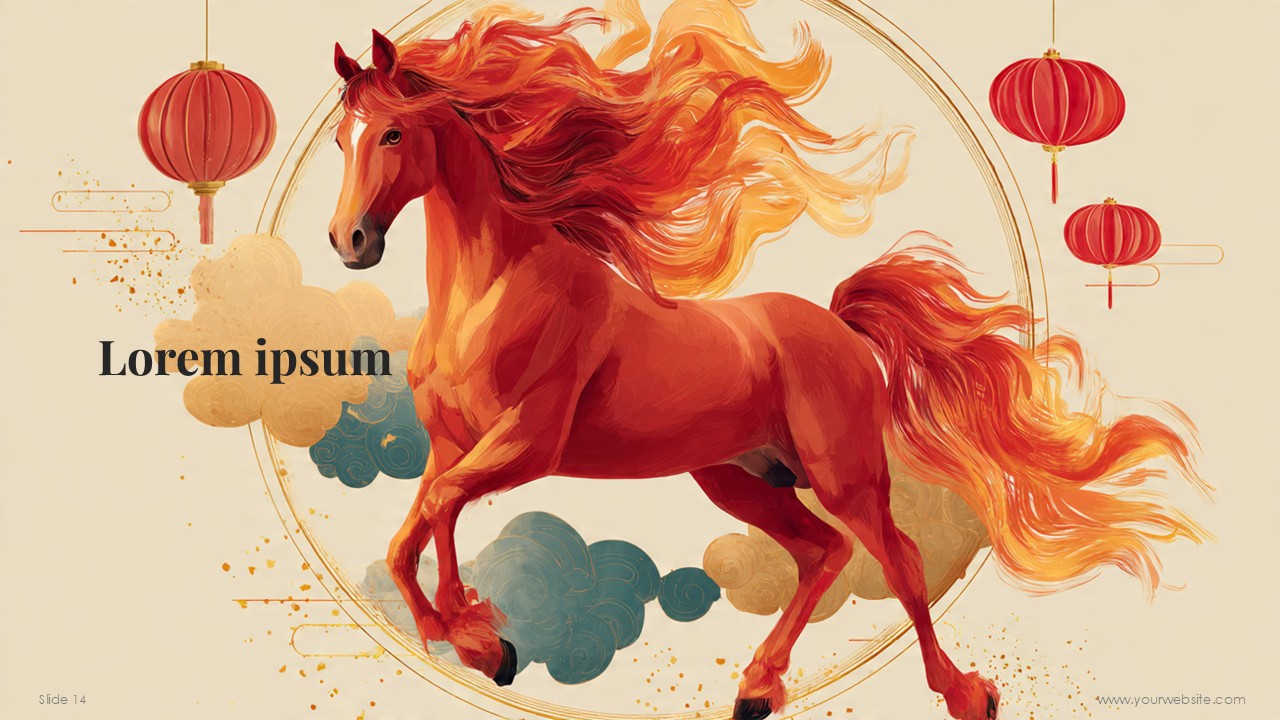 The template is both complete and flexible, featuring slides that introduced the Year of the Fire Horse, passed on holiday customs, event itinerary, and greetings. Also included are practical planning pages for activities, themes, family reunions, and decor, culminating in a presentation that is both memorable and engaging, all the while celebrating Chinese Heritage.