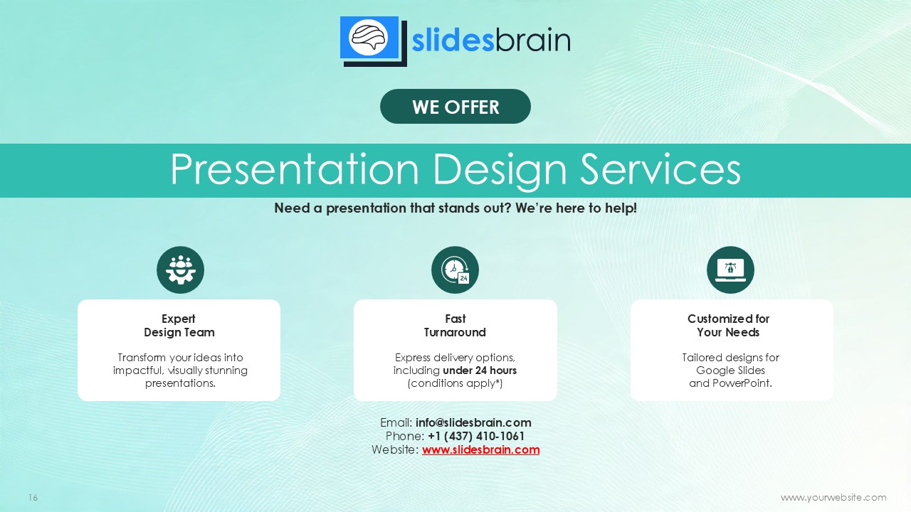 Looking for a slide or PPT that’s uniquely yours? Our presentation design agency is here to help make your ideas a reality. As a leading presentation design company, we focus on delivering premium-grade bespoke presentations that engage your audience and ensure message retention. Kindly get in touch with us for professional custom presentation design services and transform your brand’s message for the purpose that you have in mind.