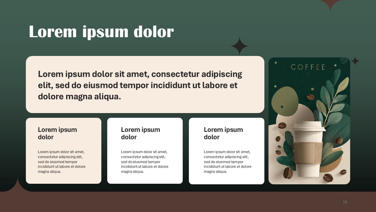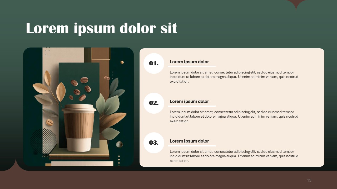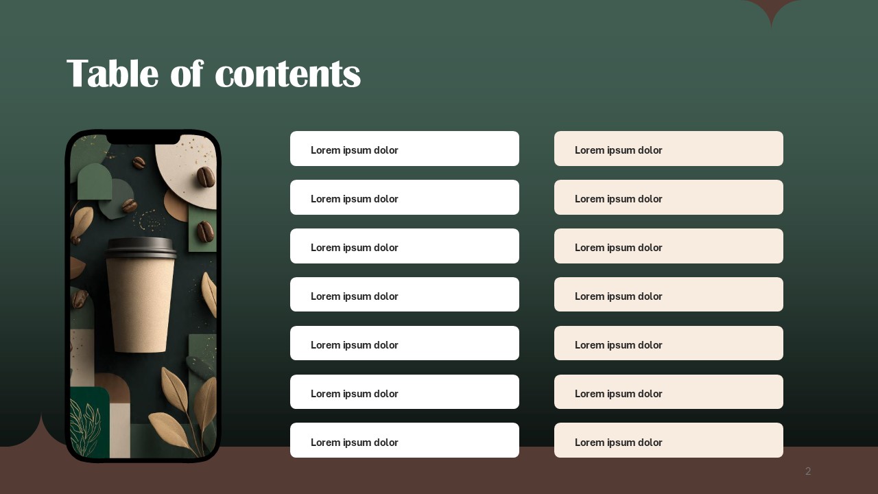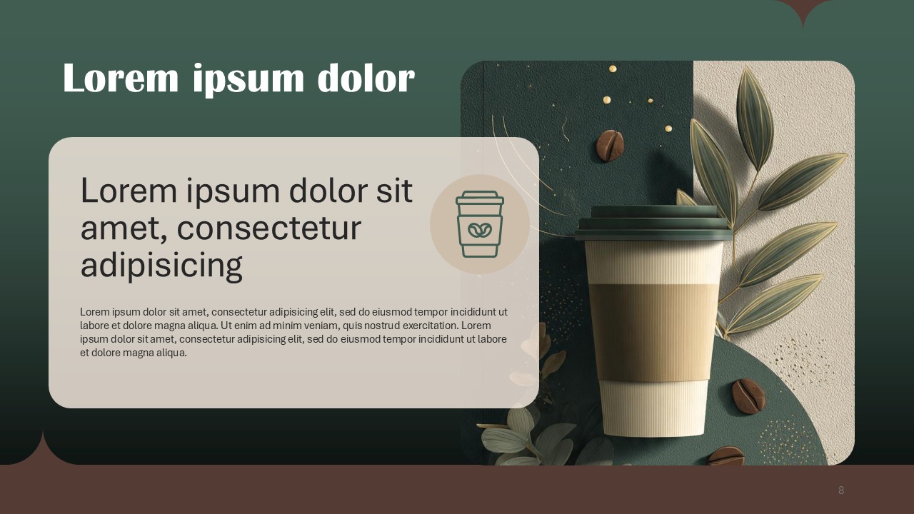 The purposeful application of a dark coffee-inspired color palette works in both an aesthetic and psychological manner. Deep, earth brown tones signify the quality of authentic organic roasting, whilst light creams remind the viewer of an inviting café ambiance. The entire color palette of the PowerPoint sets the tone of your business case, bringing an authentic sense of brand personality and identity to the unserved cups of coffee, making the business case grounded, and highly appealing.