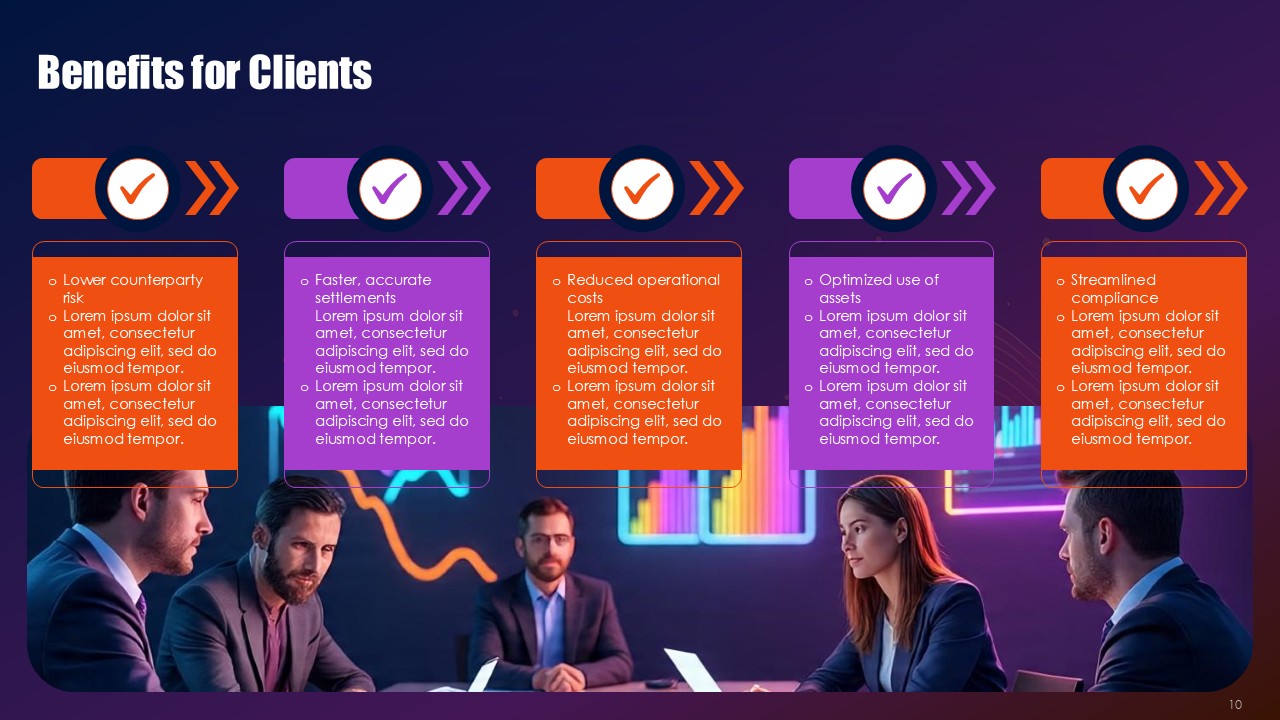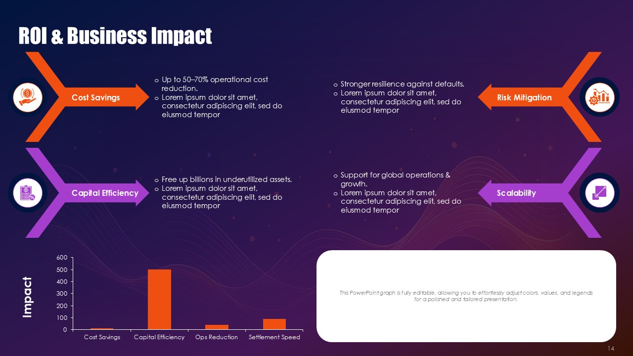 Remodel real-time risk scenarios using PowerPoint and Google Slides. Input valuations of current collateral into integrated assessment dashboards, recolor risk tiers based on live market data, or embed covenant compliance tracker monitors in slides. The Collateral Risk Management Solutions PowerPoint Presentation includes the following specialized modules are Legal frameworks for cross-border collateral , Digital asset securities and crypto collateral volatility, Environmental, social and governance (ESG) collateral scoring, Scenario stress testing for and during an economic downturn, Universal Applications in Secured Finance.