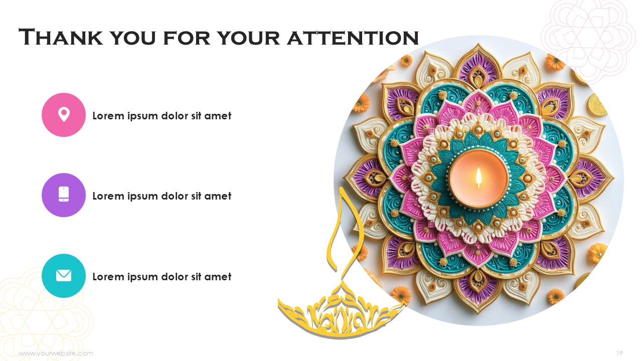 For those who appreciate deep spirituality along with the thrilling joys found within the favorite holidays of India, the ‘Deepawali: A Festival of Lights’ ‘’ presentation template offer 19 handcrafted, and completely free, slides designed for such. This template embodies the ‘Deepawali’ spirit with warm and joyous colors of royal purple, festival pink, serene cyan, and melanin yellow, sort of how around the festive time, diyas and mithai and other celebratory lights and treats spring to life. This template is for teachers and cultural and community and organizational groups within global corporate structures. Each slide preserves the traditions along with the rituals and universal messages of the festival that is overtaken with enchanting, vivid images to engage the audience.