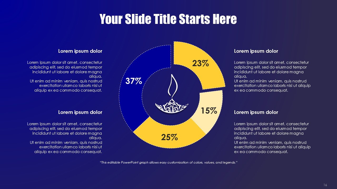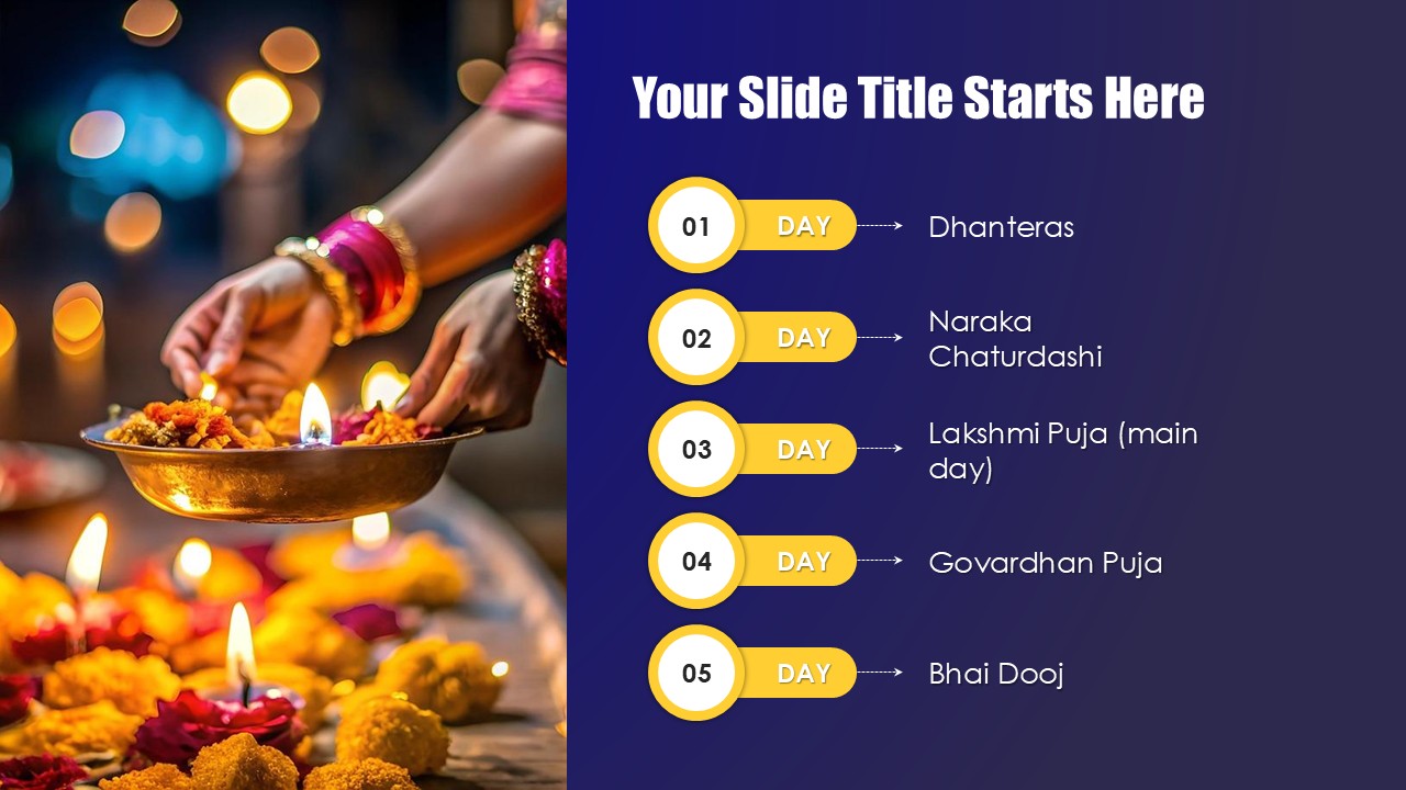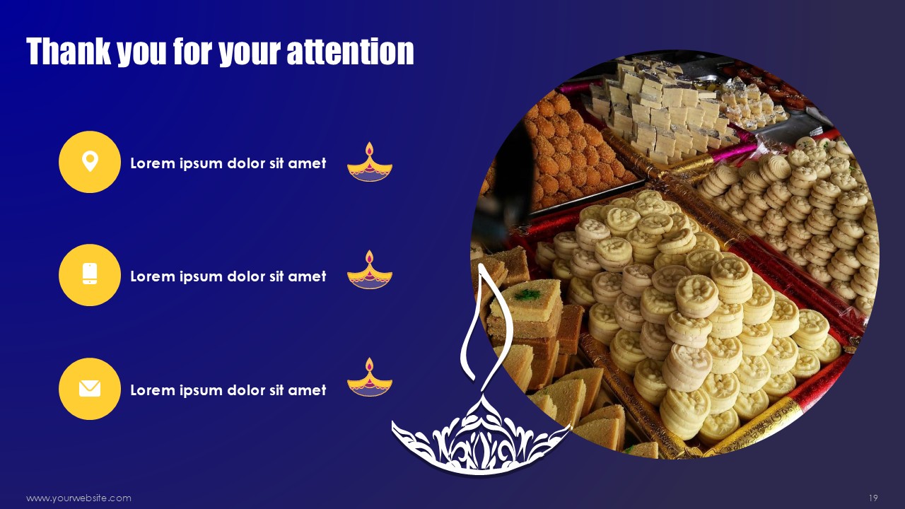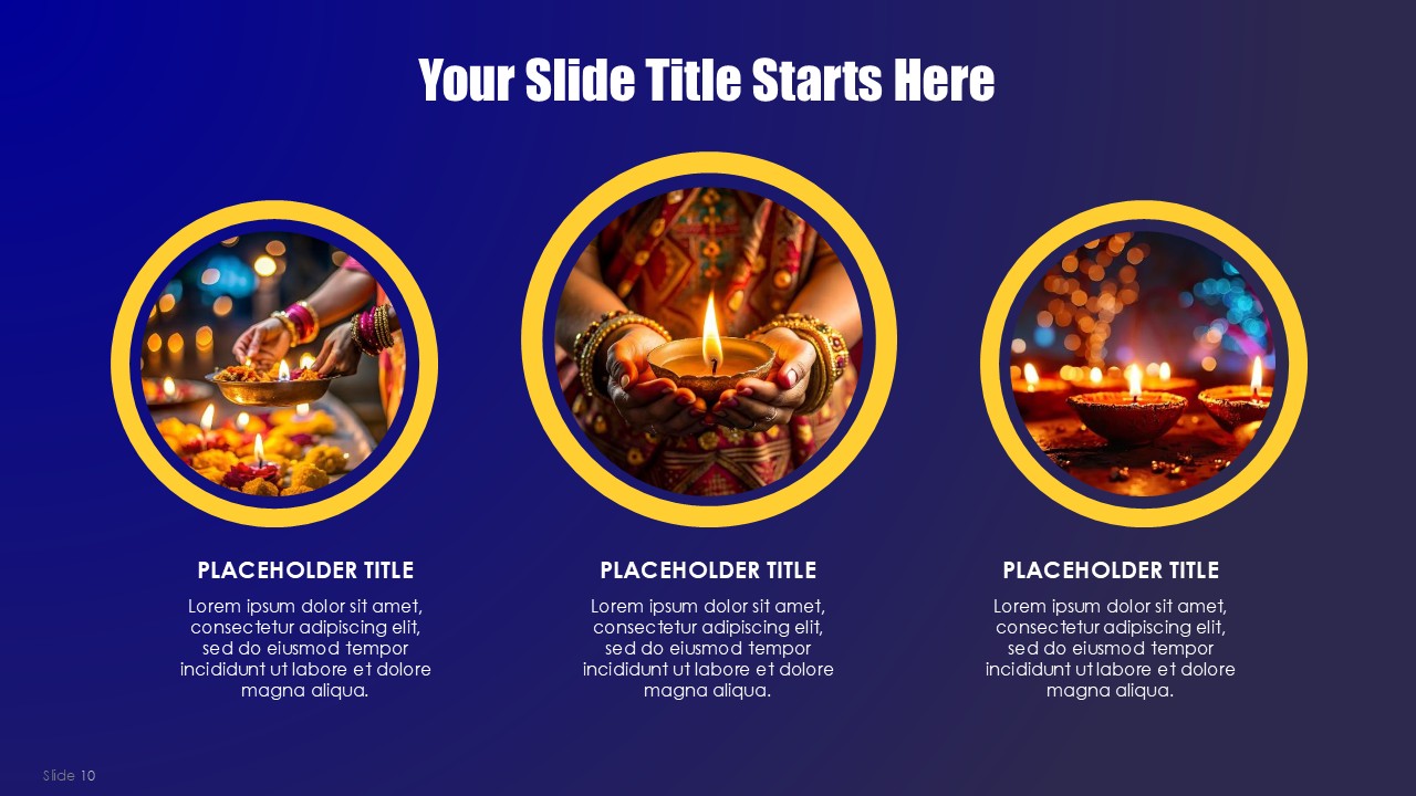 The Diwali Festival Presentation Template celebrates the light and unity of Diwali through a free, fully customizable PowerPoint and Google Slides presentation template. Through the creation of insightful, inspiring documents, this presentation template will help you create a presentation that brings people together, enlightens people, and invites them to share in the hope and prosperity of the Diwali Festival. 19 free slides. Ideal for educational, organizational, and personal uses. No needing design skills.