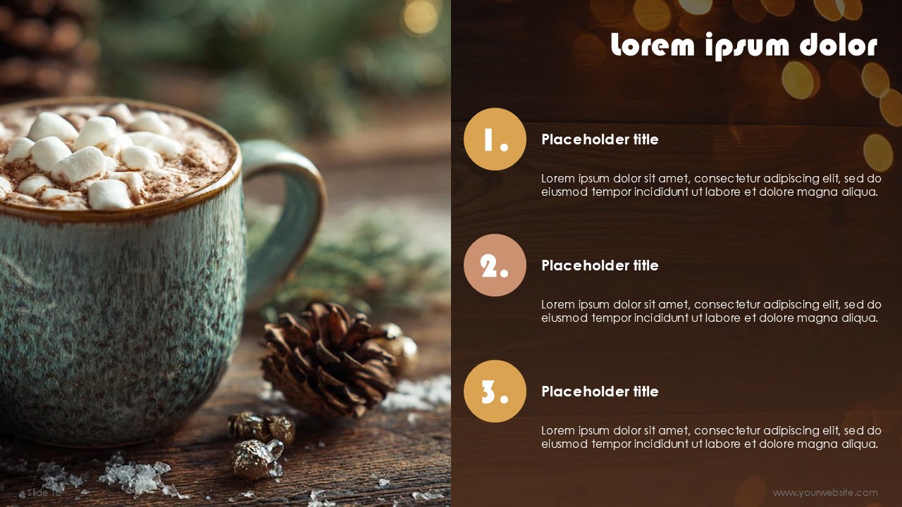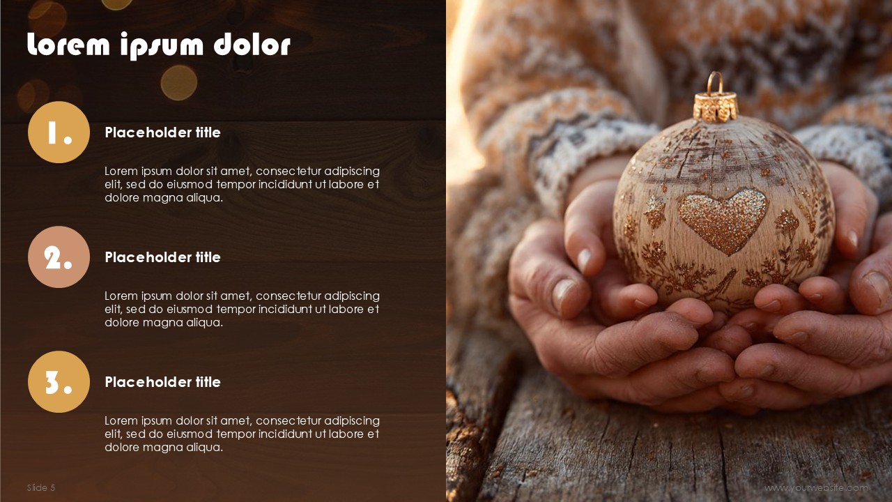 Employing a rustic charm design for the other Christmas slides, we have complemented spacing and White negative space with Organic segment texture and decoration ornaments of Christmas celebration, and could whole heartedly combine with content that captures your info beautifully for functional space and seamlessly integrates with Christmas and holiday warmth. These slides are structured for business communications professionally and welcoming with genuine holiday cheer. Perfect for updates on business communications or other holiday messages.