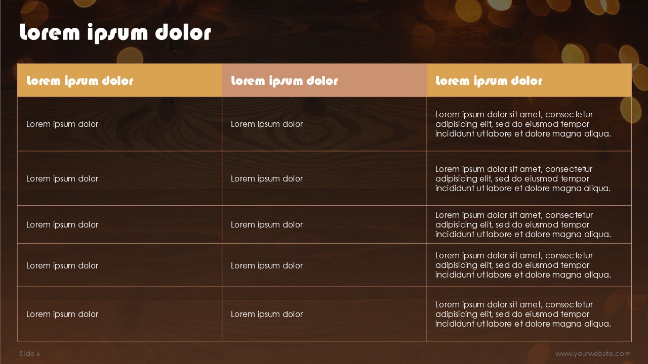 The Elegant Christmas Business PowerPoint Deck’s 12 available slides effectively combine rustic charm with corporate professionalism. The warm color palette, containing deep brown and festive yellow, goes well with the design elements, including decorations shaped like Christmas ornaments, lots of rustic rope, and wooden textured backgrounds, creating a warm and classy atmosphere. The wonderfully crafted ornaments and rustic themed decorations, along with the wooden textured backgrounds, create a perfect balance of holiday warmth and attitude, with a design ideal for the corporate Christmas meetings and holiday client presentations, year end corporate reviews, and similar business Christmas activities of the festive period. The slides with this balance of design and functionality are classy and perfect with the corporate attitude.