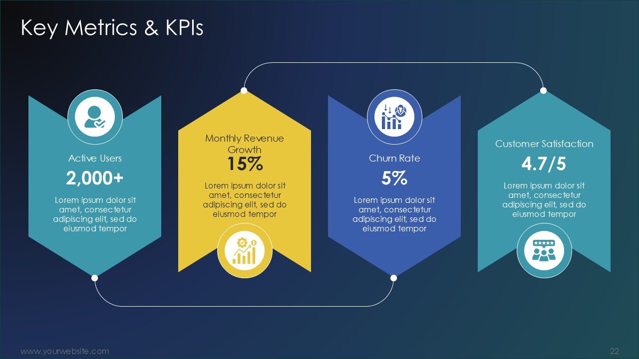 The presentation templates assist with simple conveying business strategies and narratives. This can include company background, overview, problem, and solution, market potential, business models, traction, financials, and strategies for growth. Each slide has a consistent look supporting the layout to further the readability and focus on the important insights.