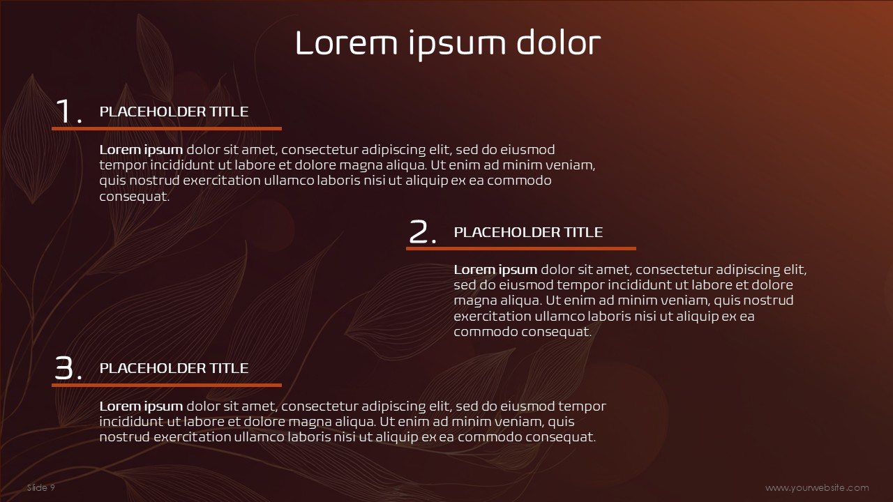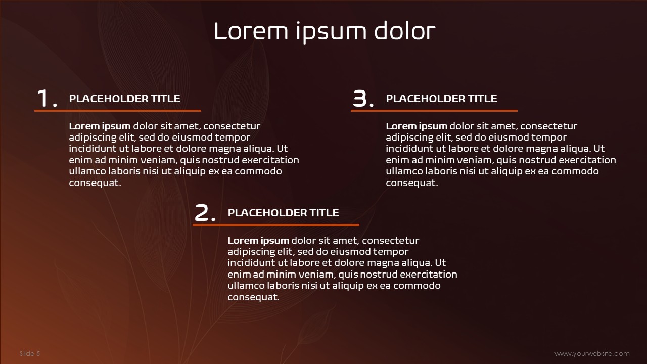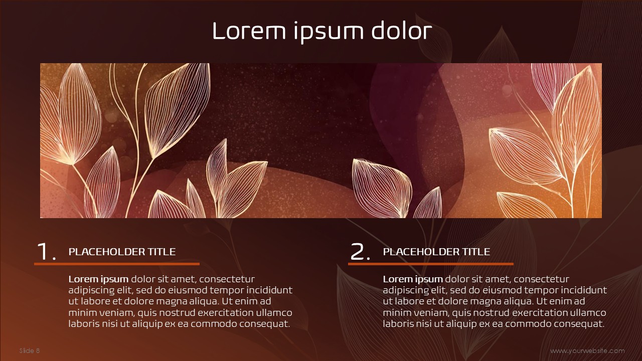 The color orange symbolizes energy, vigor, creativity, and the warmth of autumn, and the color brown communicates stability, dependability, and natural genuineness. These colors are in high harmony and balance: the orange complex elements give the design energy with the main focus and movement while the brown text and borders provide a polished structural sophistication balance. The Fall Abstract Free Google Slides Themes and PowerPoint Template employs the hue to give a contemporary and seasonally warm feel to the presentation.