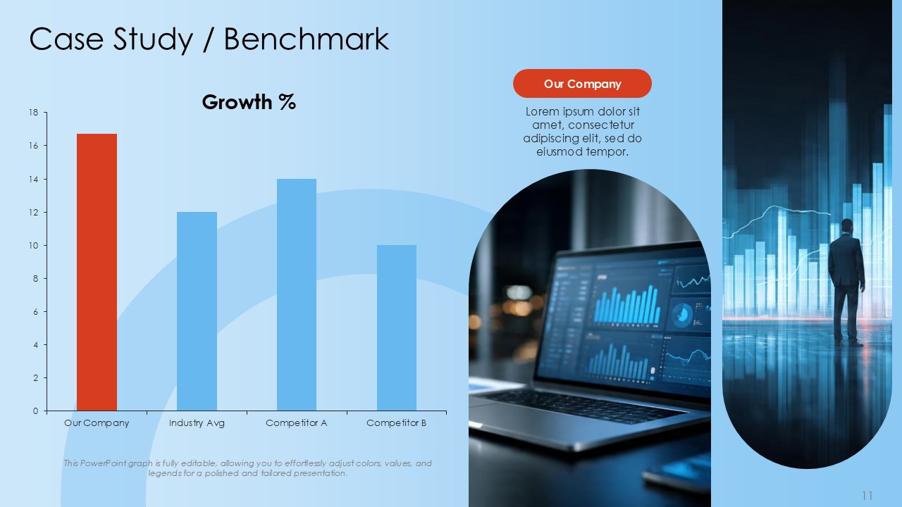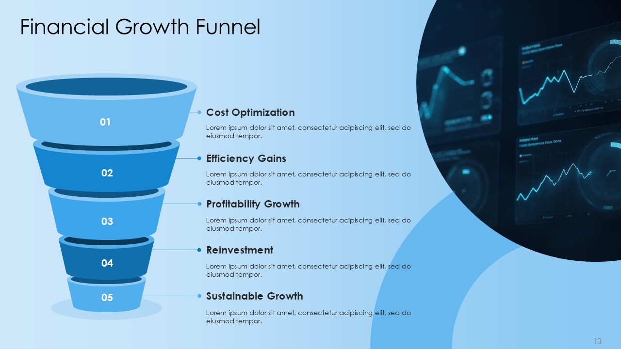 It works for early stage companies with a product and market, scaling efficiency growth firms, and for established companies reporting quarterly. Also, for companies with recovery momentum. The Pitch Deck Presentation excels in Internal budget reviews, proposals for M&A, debt financing, and turnarounds. Financial clarity to the decisions enables the determination of critical decisions.