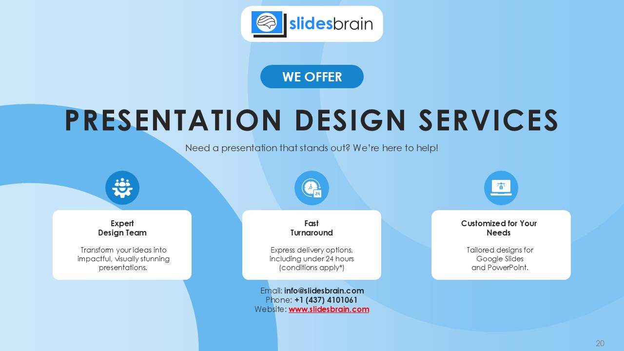 Looking for a slide or PPT that’s uniquely yours? Our presentation design agency is here to help make your ideas a reality. As a leading presentation design company, we focus on delivering premium-grade bespoke presentations that engage your audience and ensure message retention. Kindly get in touch with us for professional custom presentation design services and transform your brand’s message for the purpose that you have in mind.