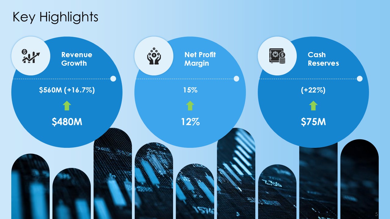 You can tell financial narratives in real time with PowerPoint and Google Slides. With the Finances Highlights Pitch Deck Presentation, you can add SaaS metrics and subscription ebooks, manufactury cost efficiency analyses, retail comparable store performances, and the startup runway and milestone trackers in specialized financial modules. With the input of real time data, you can update growth figures in dashboards, change expense ratios, and adjust embedded investor frameworks capitalization tables.