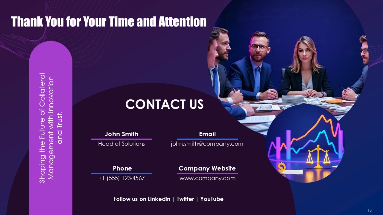 The Financial Collateral Management PPT Presentation is a 19-slide premium PowerPoint deck tailored to financial will tell you that institution, risk management, investment as well as collage and Fin-tech teams who will present with authority and visual clarity sophisticated visual collateral strategy and slice them with profitable precision down to the neon 3D visuals and bold dark theme text hypermodern aimed at capturing the worth of the sophisticated technical and sleek cash management presentation.