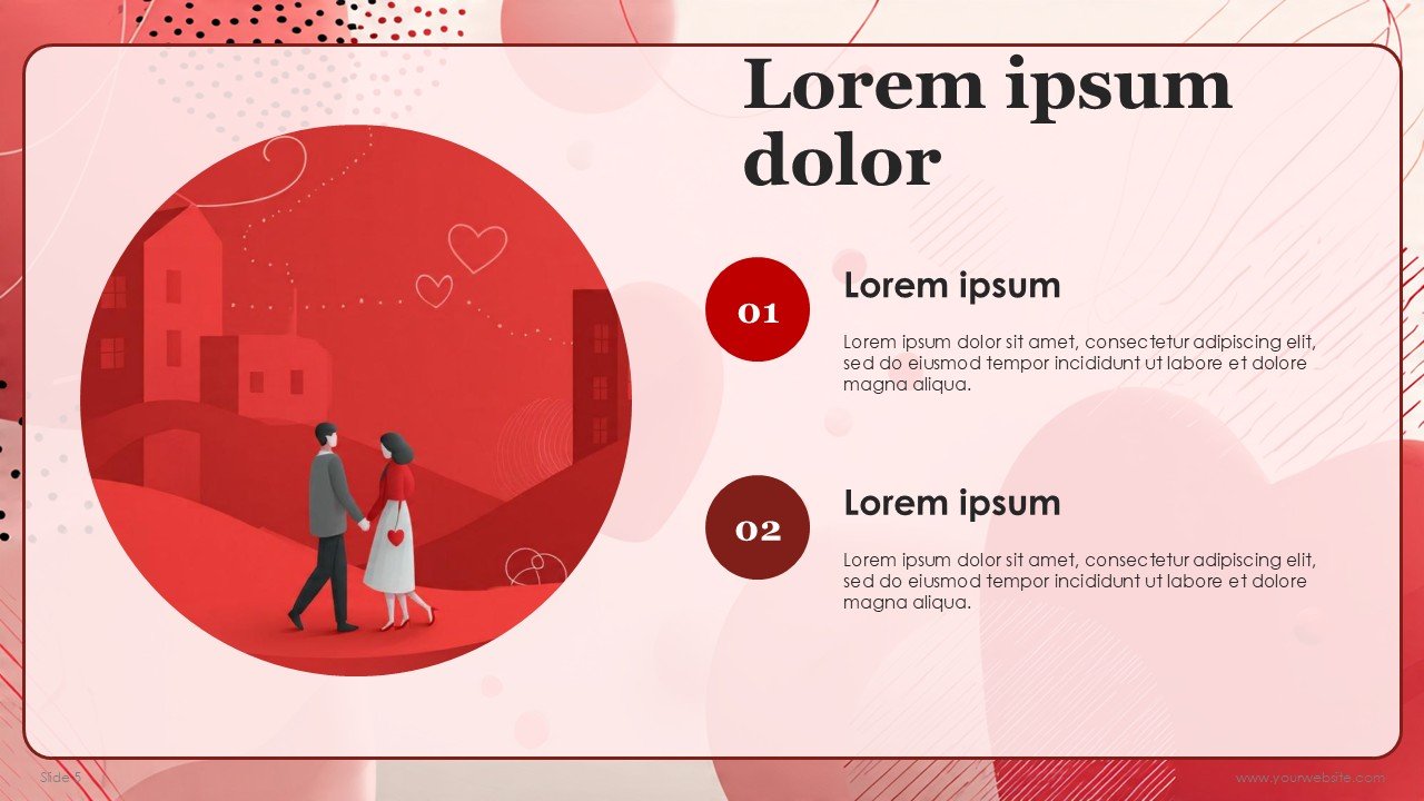 The Valentine PPT template is 100% editable which means there is no limit to how much one can customize the template. Users can change the colors, the images, and even the icons and text. The template has been designed for users with no prior experience in design. It is compatible with Google Slides and Microsoft PowerPoint which gives users the option to choose which of the two presentation tools they’d like to use. If one is to make a Valentine’s Day presentation, romantic slideshow, proposal presentation, love story presentation, Valentine’s Day marketing presentation, or festive greeting, this template helps the user to convey the message in an attractive manner.