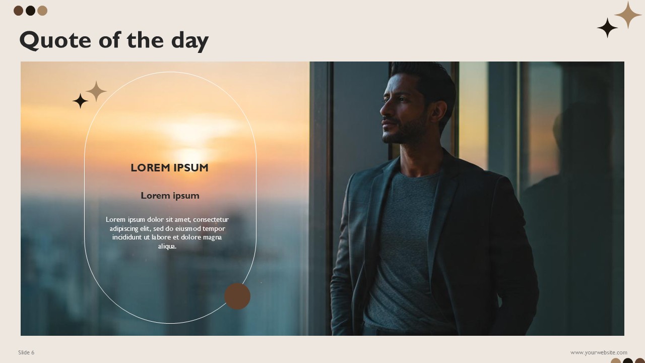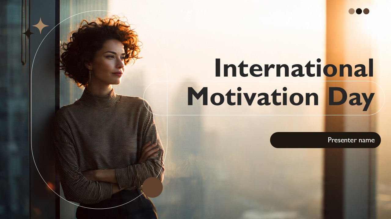 The free PowerPoint presentation for International Motivation Day features a professional and captivating design that will lift and energize the spirit of the audience. The combination of black and bold brown colors represent strength, confidence, discipline, and determination which makes this presentation great for International Motivation Day activities, seminars, and workshops, as well as for corporate and educational meetings and leadership talks.