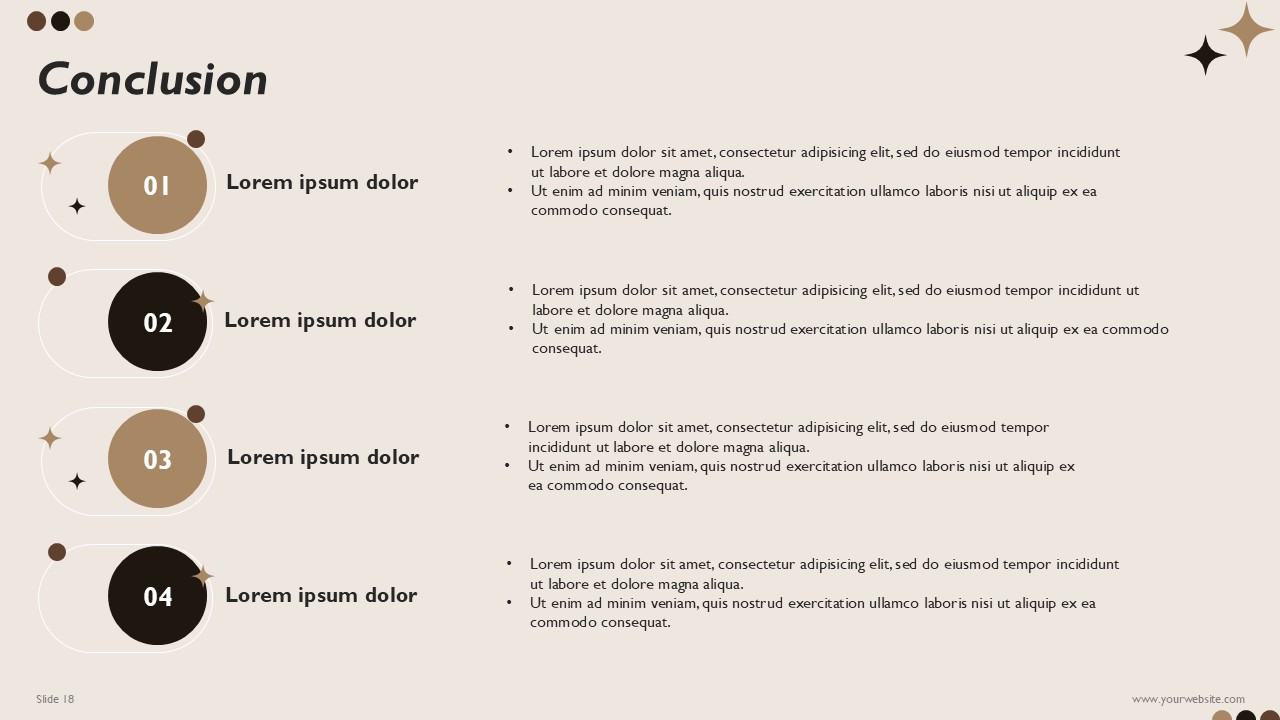 The presentation contains 20 slides. Each slide presents a modern and clean look with big letters and inspiring design. The colors are consistent throughout the slides making the theme look premium and professional, perfect for a corporate as well as an academic setting. The structure of the slides are great which helps in communicating motivational messages seamlessly.