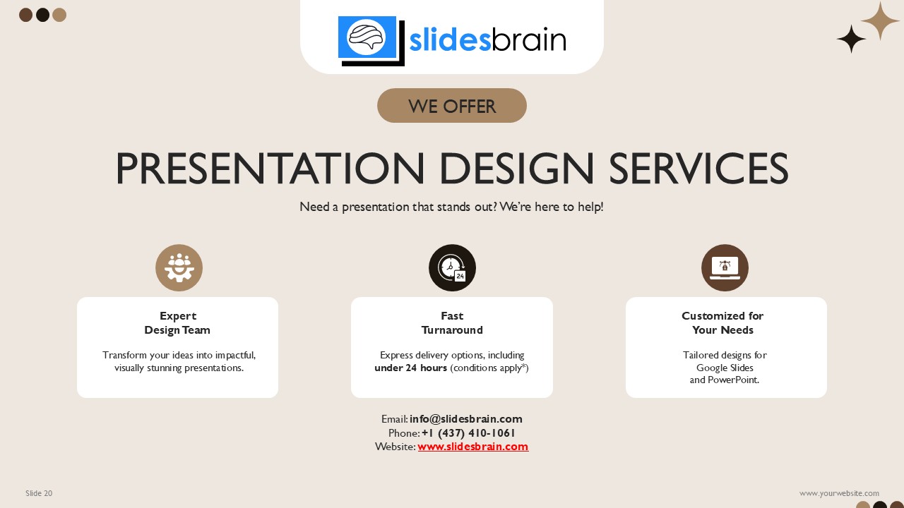 Looking for a slide or PPT that’s uniquely yours? Our presentation design agency is here to help make your ideas a reality. As a leading presentation design company, we focus on delivering premium-grade bespoke presentations that engage your audience and ensure message retention. Kindly get in touch with us for professional custom presentation design services and transform your brand’s message for the purpose that you have in mind.