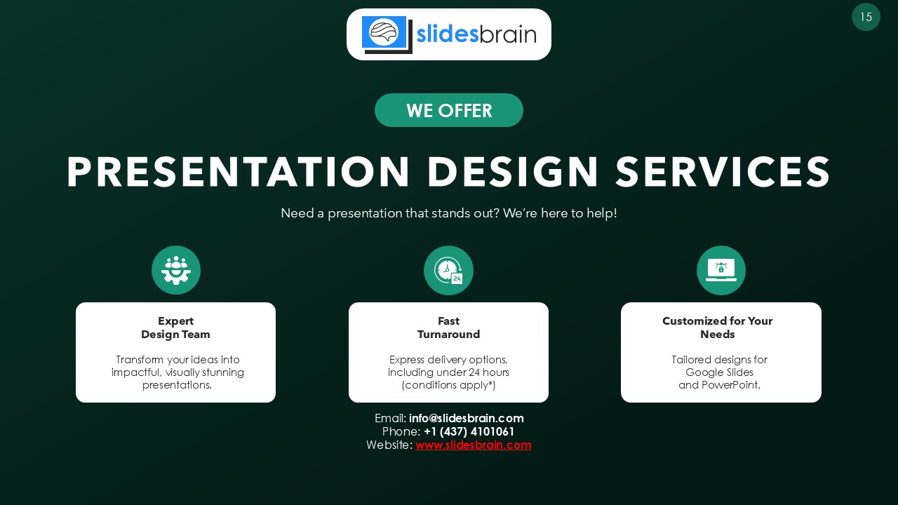 15 Slides, 1366 x 768 pixels – 16:9 Aspect Ratio (HD Presentation Quality)