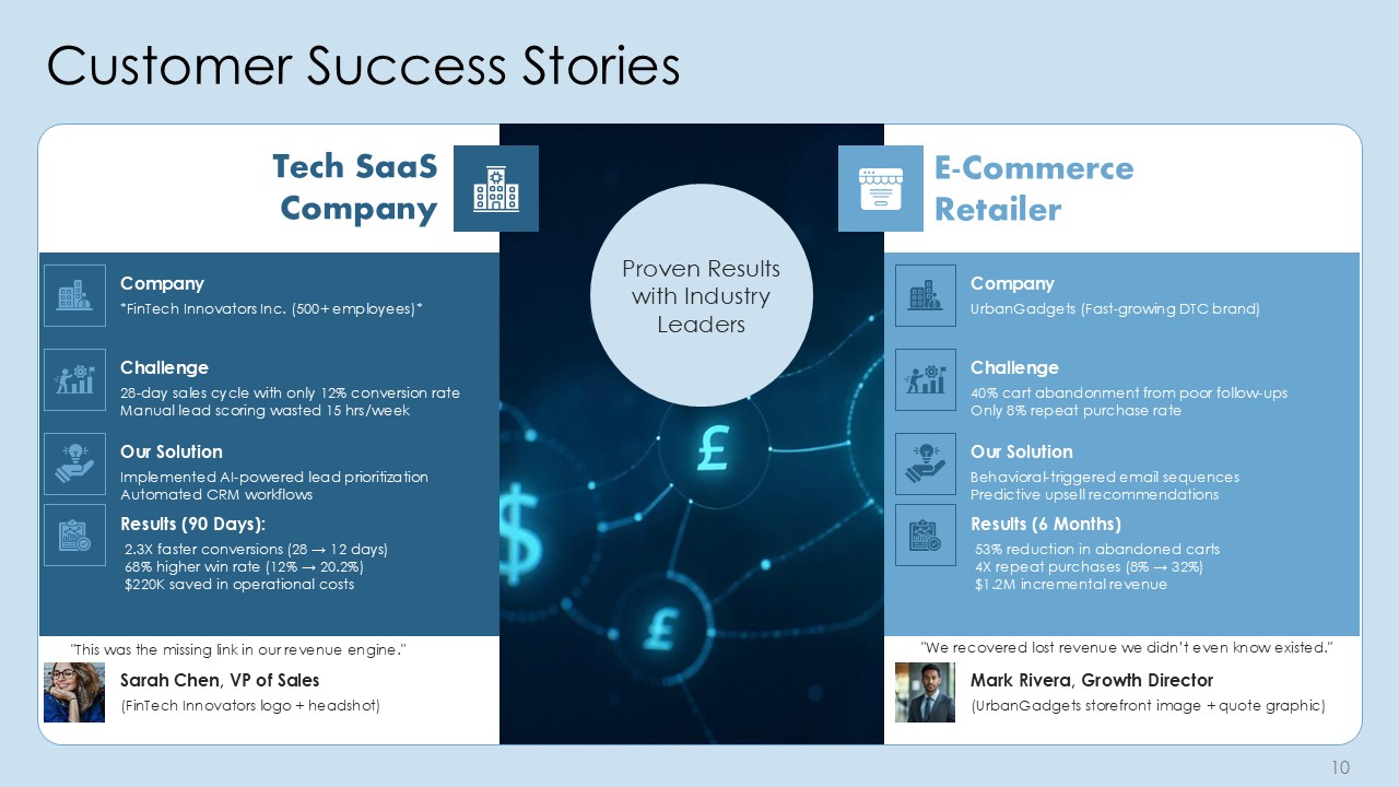 Customer pain point analysis, competitive positioning, ROI models, and implementation roadmaps are part of the comprehensive sales framework. All of these features are created with the High Impact Sales Pitch Deck PPT Presentation Template in mind. The template allows additional slides for case study presentations, pricing strategies, team introductions, and case study presentations to make the sales call seamless and unobtrusive for the prospects.