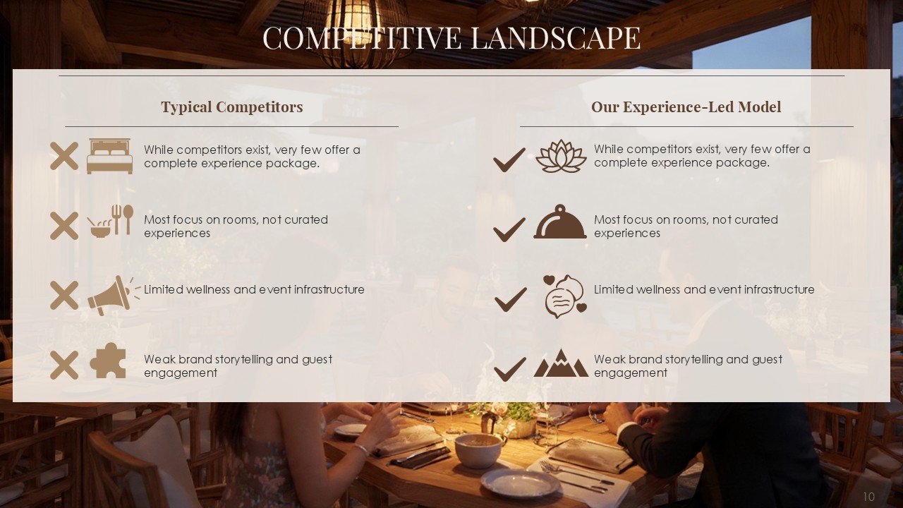 - Ideal for hotels, resorts, tourism startups, and hospitality investors