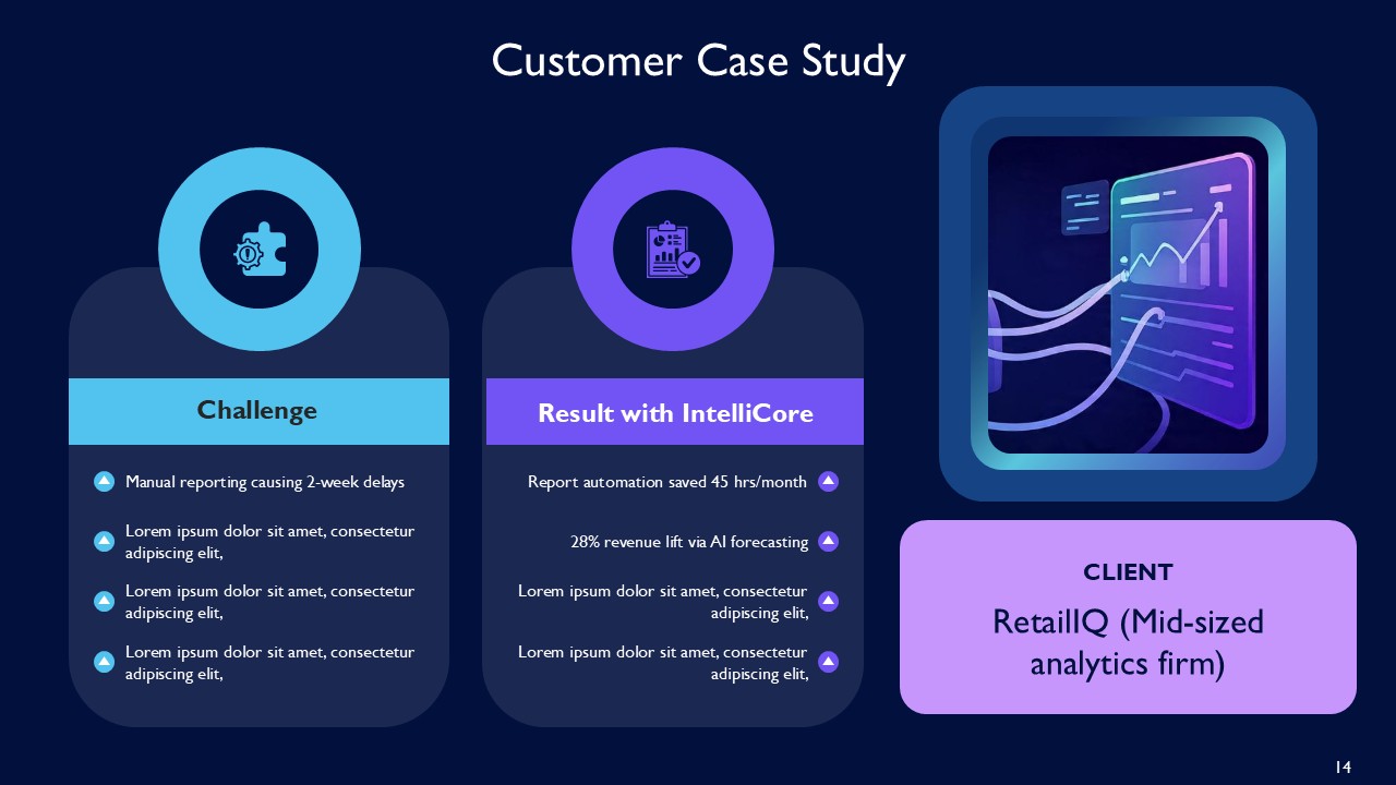 The IntelliCore AI SaaS Platform for Real Time Business Insights PPT Template also has comprehensive content coverage. It has the data integrations, the defining case studies, workflows, predictive modeling, analytics, and the astonishing ROI. Everything is done with a clean template that adds visuals to the data and also makes it easier to understand. It has outlines for the winning case studies, integration timelines, and the outlines for the platform that add sophistication to the whole presentation. It adds story with the spokes of leadership technology, which adds even more value to the business.
