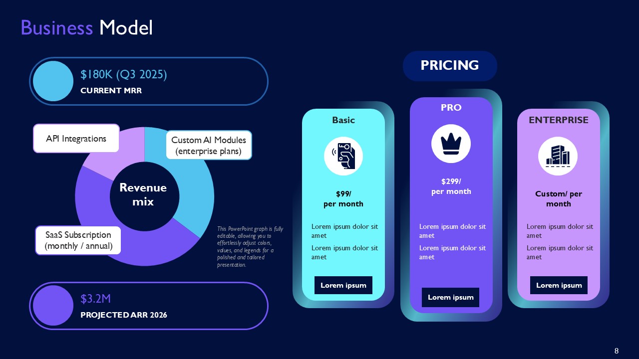 Every company has a different purpose and business idea so the sleek IntelliCore AI SaaS Platform for Real Time Business Insights PPT Template adds a professional touch while customizing it for SaaS demos, investor pitches, or enterprise sales meetings. The templates are also available to people on google slides, which is a great perk. It helps technology companies express their value at a faster pace and adds a nice visual to their presentation. It also helps with professional polish and makes a better market leader while also simple closing the deals.