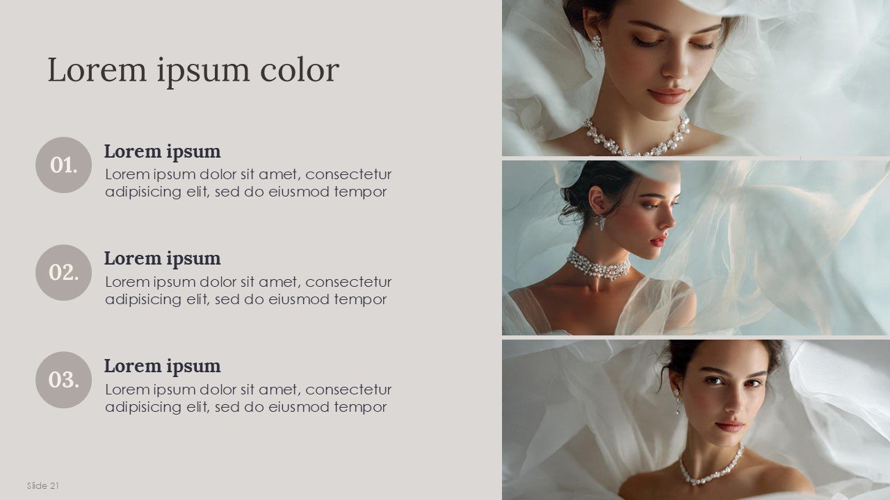 Jewelry Trends 2026 Cloud Dancer Pantone Color of the Year PPT provides a professional, contemporary, and visually aligned canvas for your presentation, whether it’s a jewelry trend forecast for 2026, collection launch, fashion marketing pitch, or design portfolio. The minimalist style offers a neutral backdrop for the focus of your presentation, whether it’s product pictures, material design, colors, or consumer insights. Considering the digital presentation market, this template will meet the needs of those looking for Jewelry Trends 2026 PPT, Cloud Dancer Pantone presentations, fashion trend PowerPoint templates, and minimalist jewelry Google Slides templates.