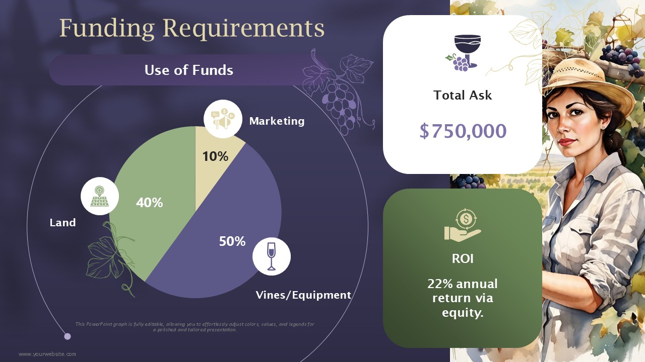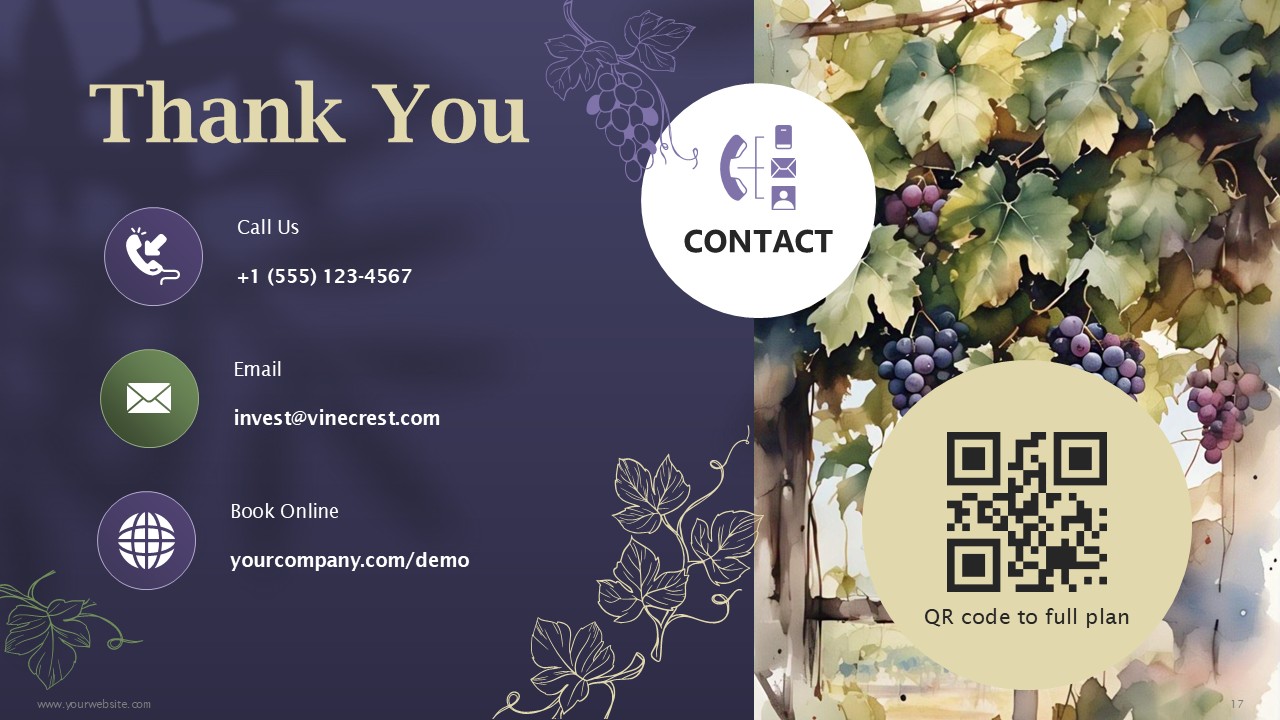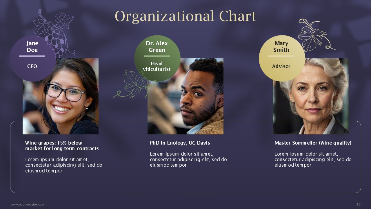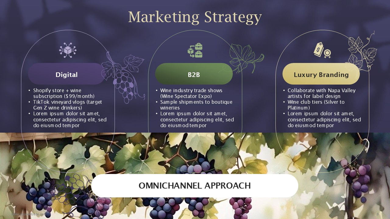 You can download the Modern Grape Vineyard Business Plan Presentation Template from our website and breathe life into your wine business with the perfect and balanced combination of strategy, narrative, and design. This template is perfect for anyone aiming to create a business which is based on old values, eco-friendly practices, and sustainable long vision growth.