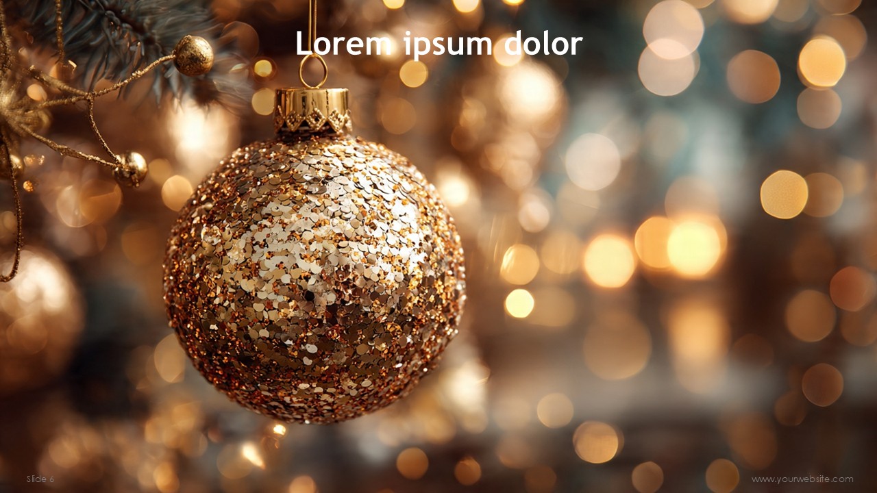 Another great advantage to he Modern Holiday Greetings Free Presentation template is the holiday cheer is amplified to give the warmth of the holidays, to make this template a personal feel to the holiday season while still maintaining the professionalism of the corporate world. Each slide is festive with a Christmas blurred effect, creating an atmosphere for the holidays and giving the slides warmth and a positive feel. This technique is sure to give holiday messages and holiday presentations that stand out with a positive snowy, festive, blurred feel.
