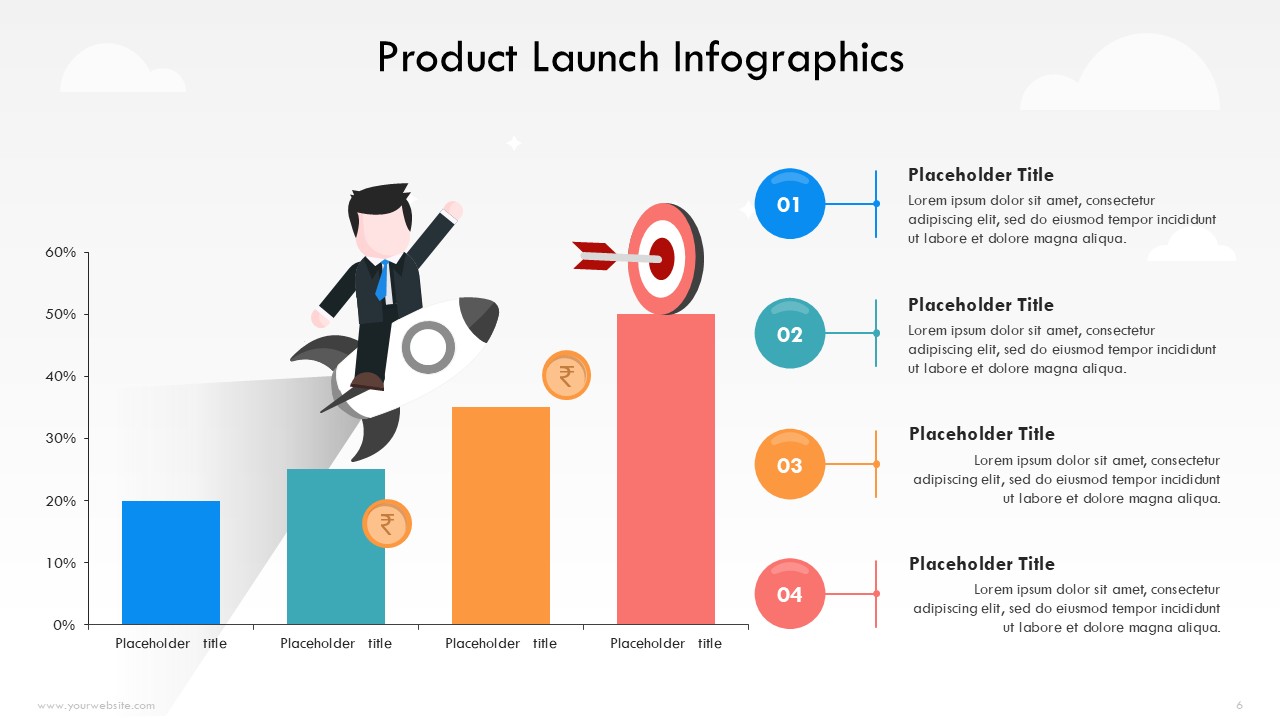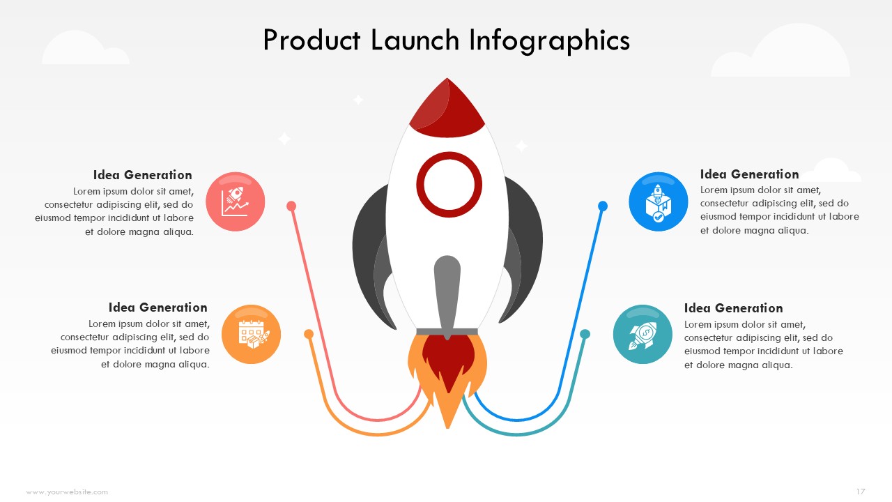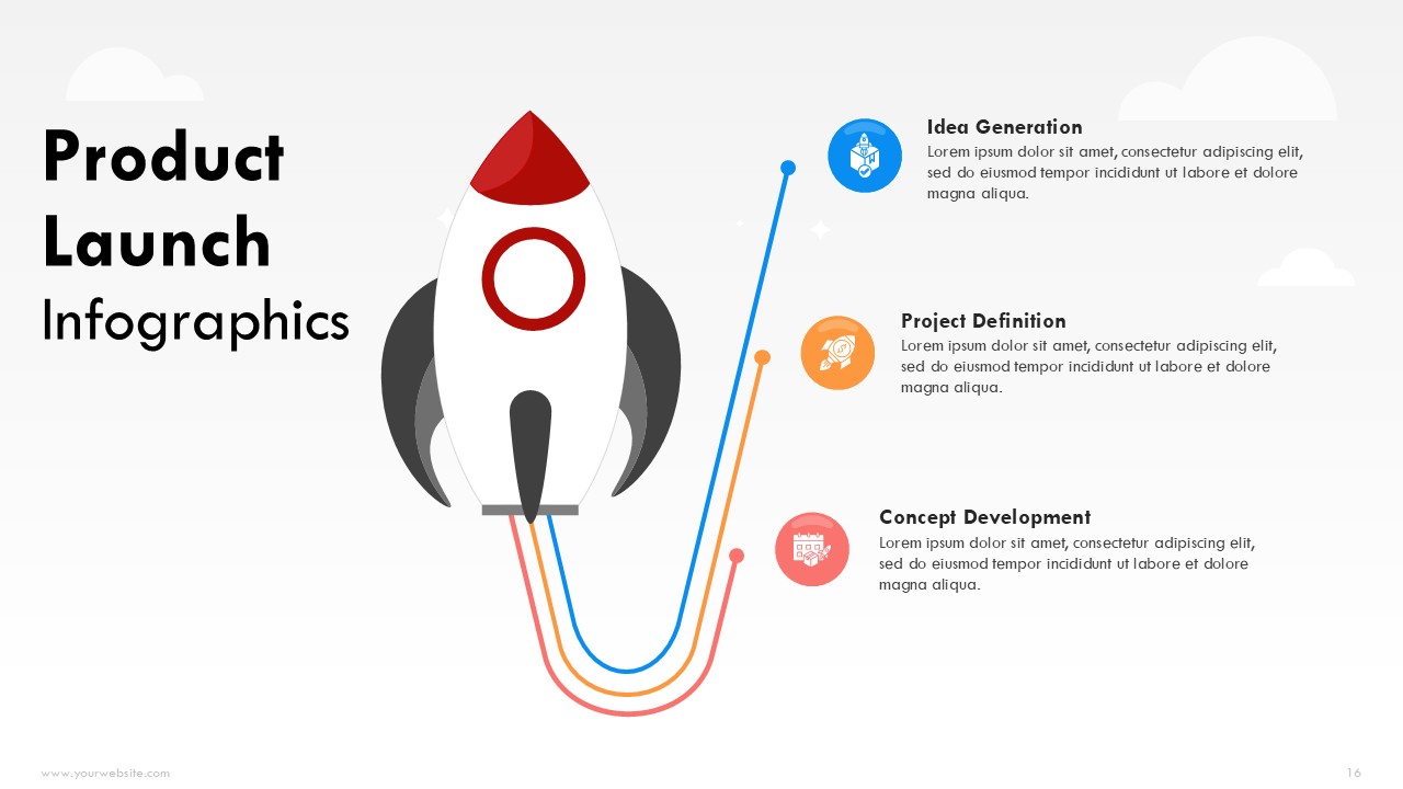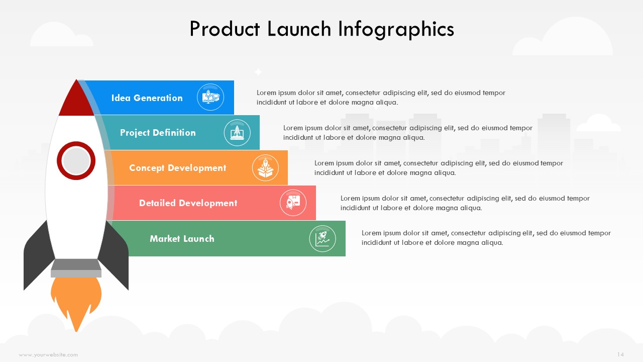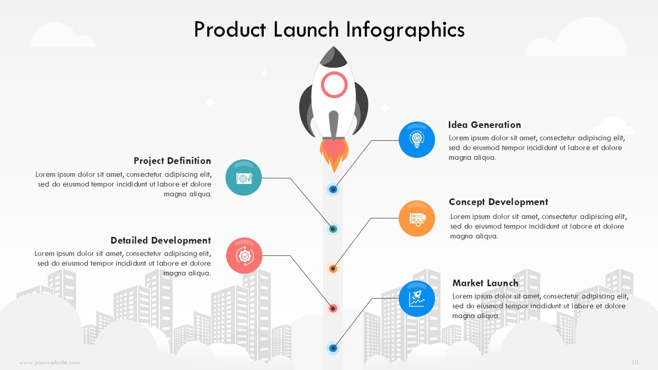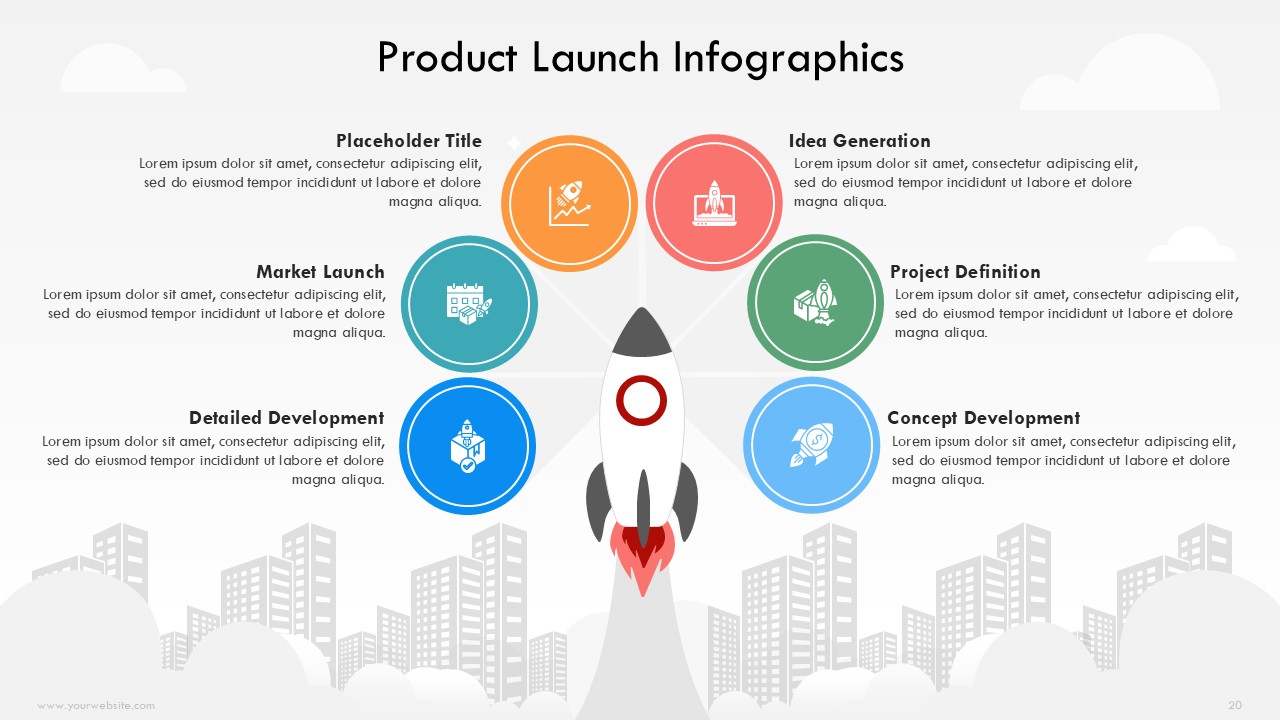 Downloading the Product Launch Infographics PowerPoint Template. Fragmented plans are replaced with a cohesive visual arsenal that turns internal teams into launch commandos, execs into believers, and markets into fervent followers, strategically colored slide after strategically colored slide.