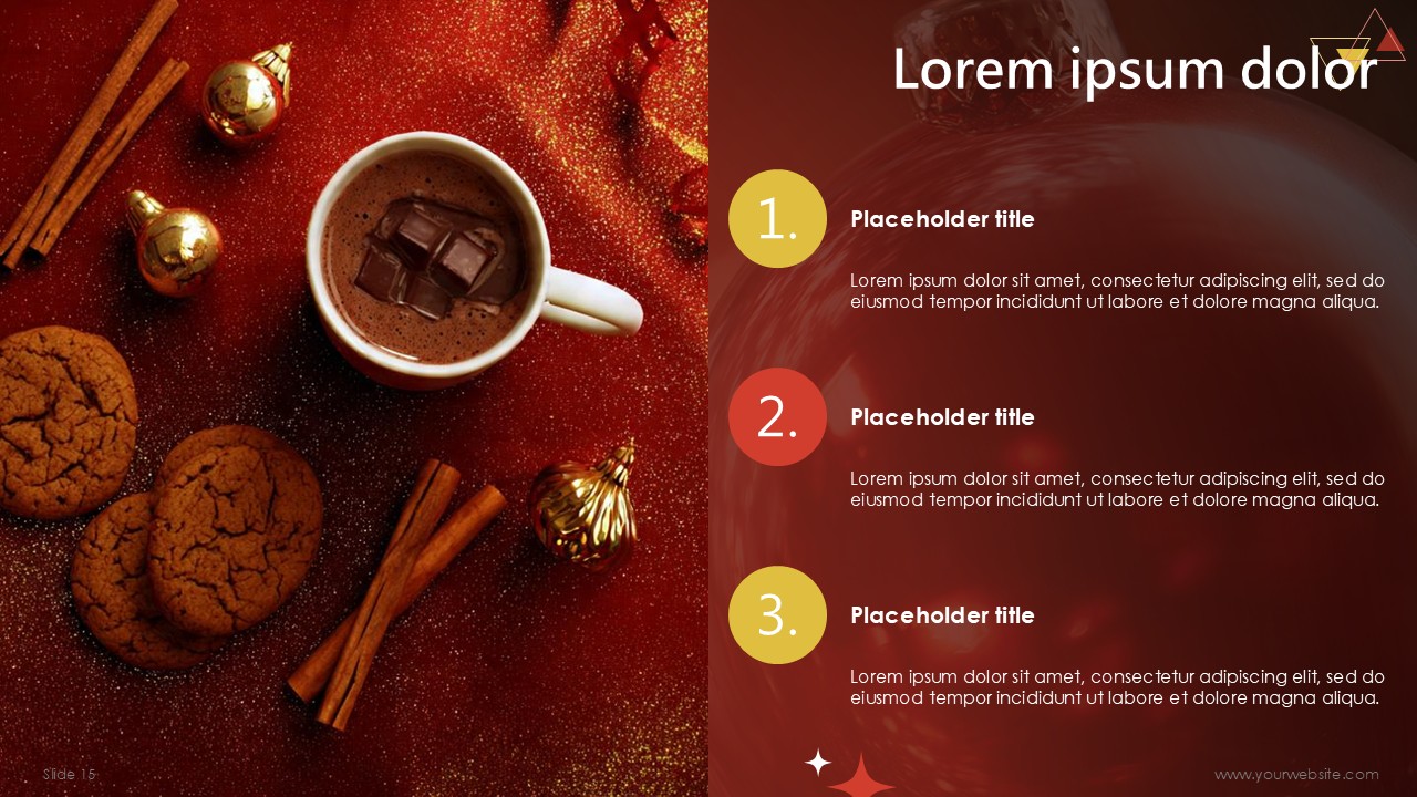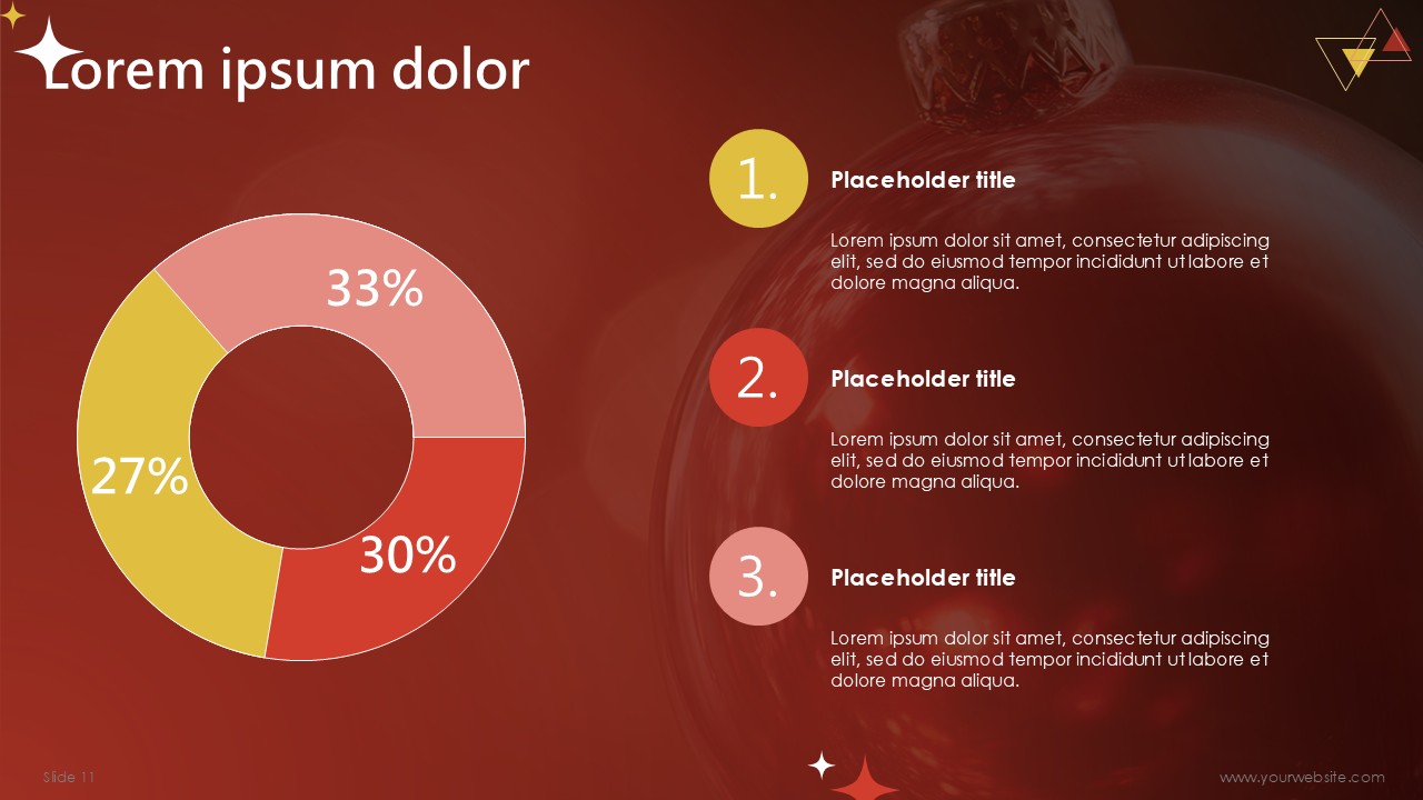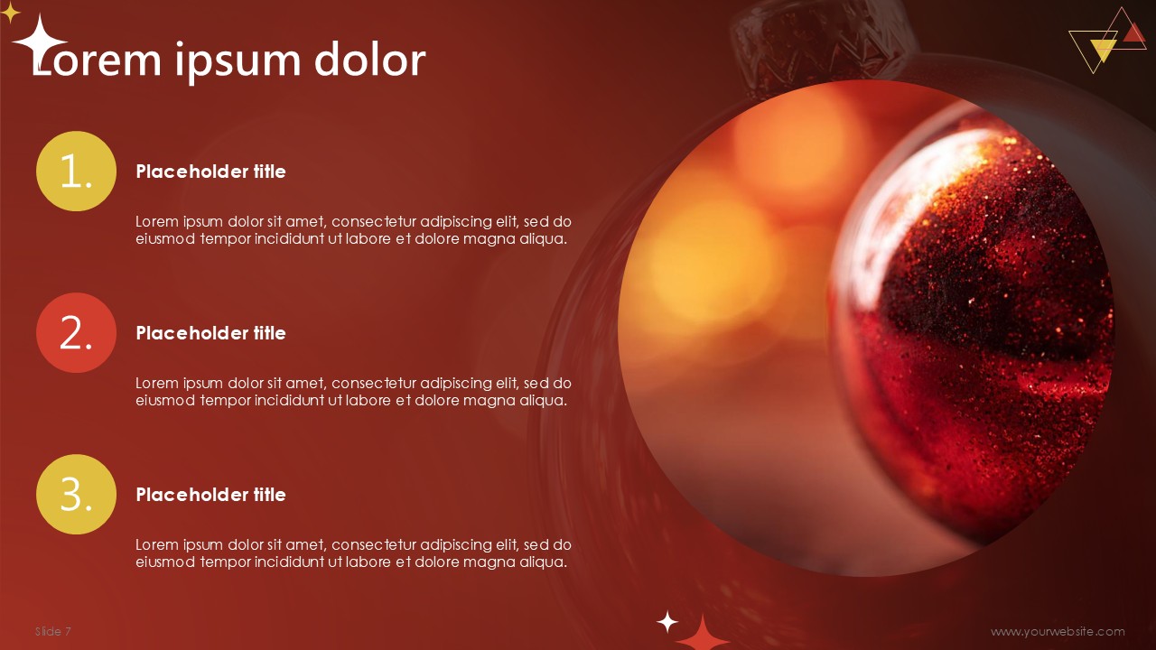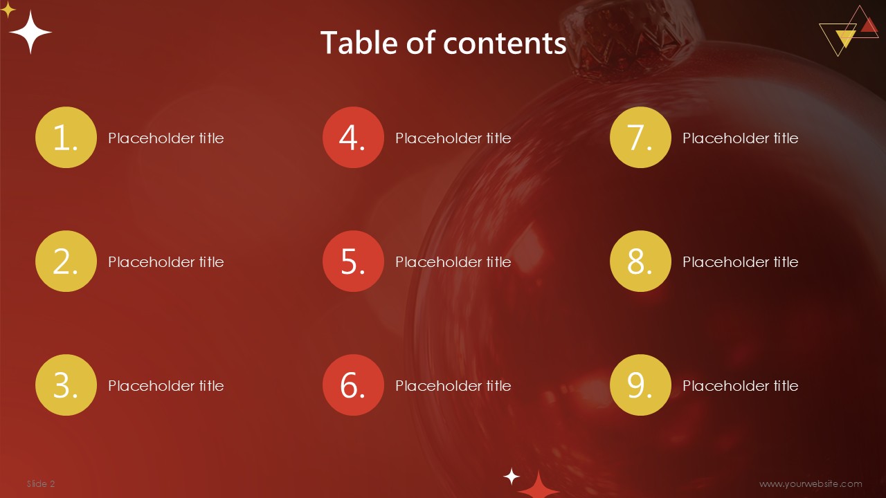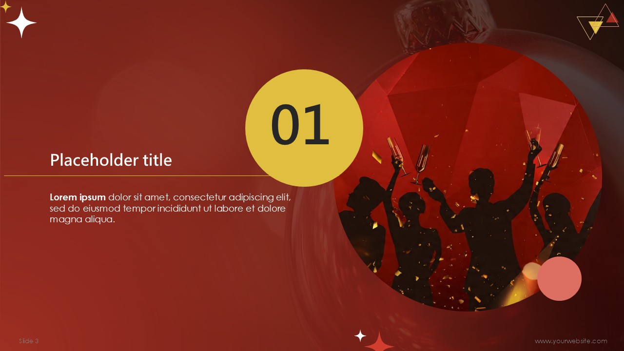 The Red Minimal Christmas Abstract Free PowerPoint Template is an uncompromisingly simple yet beautifully crafted and perfectly designed Christmas-themed PowerPoint Template for the holidays, consisting of a total of 17 slides, each having a unique creativity tailored for the holidays and creating a Christmas mood. This is a red and yellow PowerPoint Template with a unique and abstract Christmas tree with geometric shapes and artistic moderation that perfectly sustains the essence of Christmas and the holiday season. This PowerPoint Template is designed to offer the highest degree of sophistication for the holidays, perfect for holiday communications, corporate celebrations, and presentations for the holidays that focus on the approach of editorial sophistication.