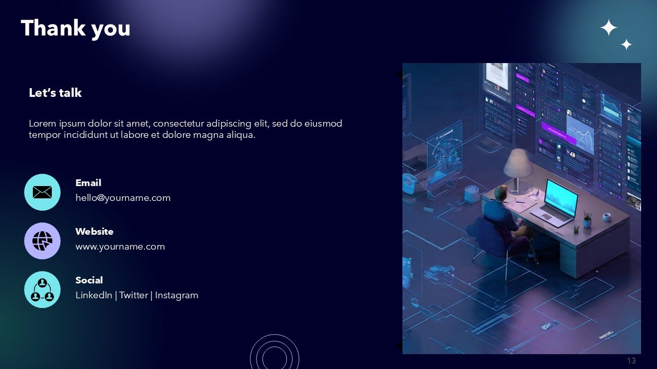 The Remote Team Collaboration PPT presentation template allows you to create a custom presentation with a fully modern and professional visual and multi-purpose. Think black, purple, and cyan with a creative slide cover with innovation and digital cover slide technology selling Remote Team Collaboration PPT presentation template. With hybrid and remote work in mind, sells Remote Team Collaboration PPT presentation template to teams, startups, agencies, and corporate professionals. Able to sell Remote Team Collaboration PPT presentation template to professionals in a corporate style.