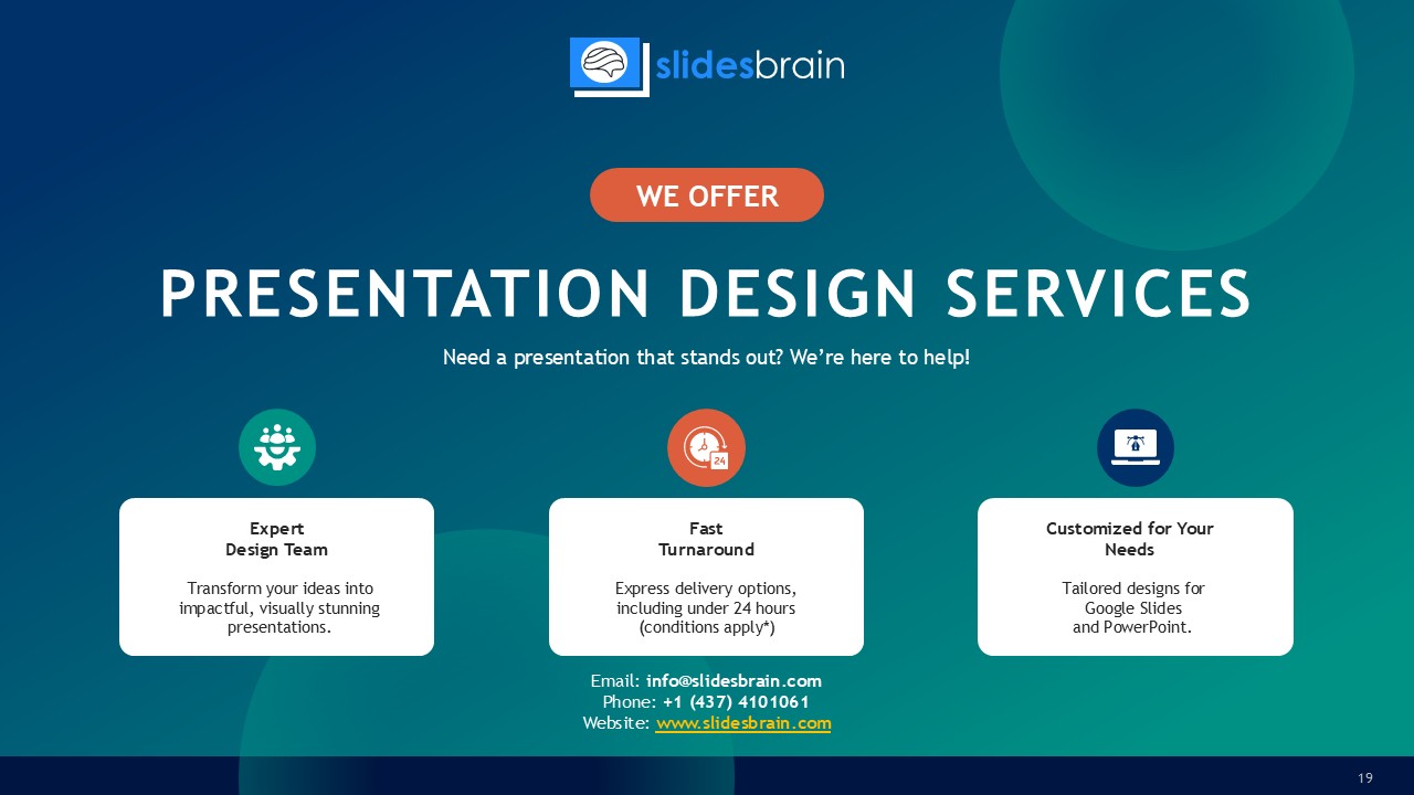 Looking for a slide or PPT that’s uniquely yours? Our presentation design agency is here to help make your ideas a reality. As a leading presentation design company, we focus on delivering premium-grade bespoke presentations that engage your audience and ensure message retention. Kindly get in touch with us for professional custom presentation design services and transform your brand’s message for the purpose that you have in mind.