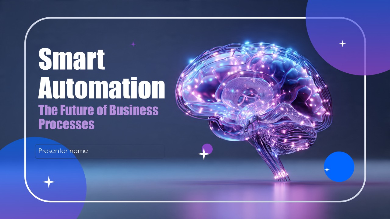 The Smart Automation PPT Presentation Template gives you an exceptional 21-slide manifesto of the era of intelligent self-optimizing systems. This template covers all of its information with an elegant mixture of purple and blue and a minimal cover image of a glowing brain. This image signifies cognitive automation and strategic intelligence. This template is tailored to operations leaders, technology strategists, and digital transformation executives. The Smart Automation PPT Presentation Template delivers the structure to demonstrate automation as an intelligent layer.