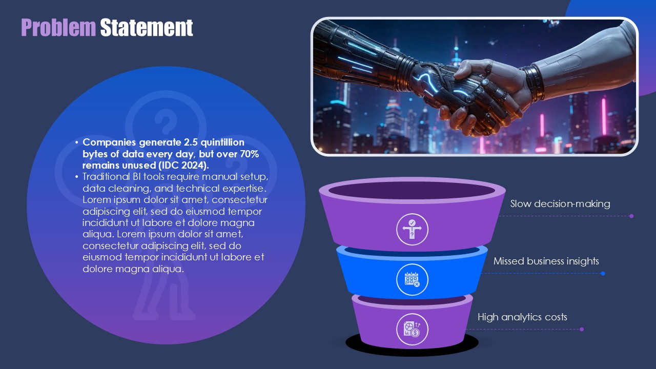 The Smart Automation PPT Presentation Template is fully editable in Google slides and PowerPoint, which serves to empower you in selling this story to a boardroom, updating investors, or aligning multiple departments. It is meant to shift the conversation from a tactical lens centering around cost-saving to a strategic view centered around the smart automation, which is the future enterprise’s central nervous system.