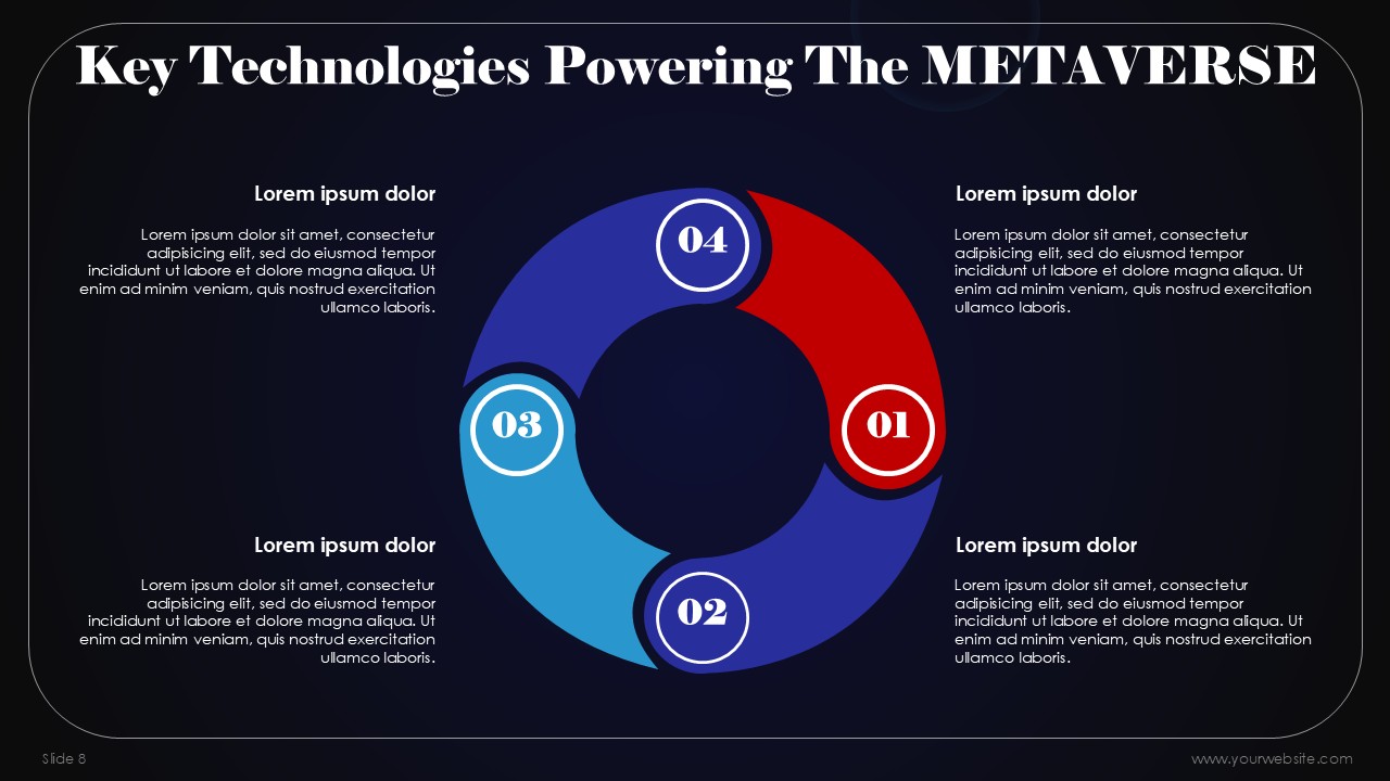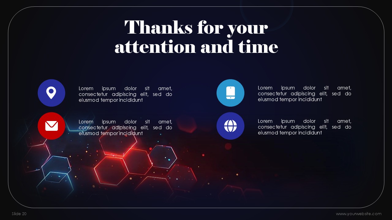 The Tech Startup Powerpoint Template explores the modern approach to tech startups by using bold colors such as blue the wards trust, red for action, and forms of the color black along with red on the slide templates to draw in future investors and audiences. This presentation slide deck template comes with 18 free Powerpoint presentation slides and is highly responsive to the intent amissions of the audience. It takes tech startup investors agility and creativity to use the templates, and hinges on capturing the attention of the audience, and investors. This resource materials has been refined to ensure rapid capture and strategic presentation of the user’s foresight.